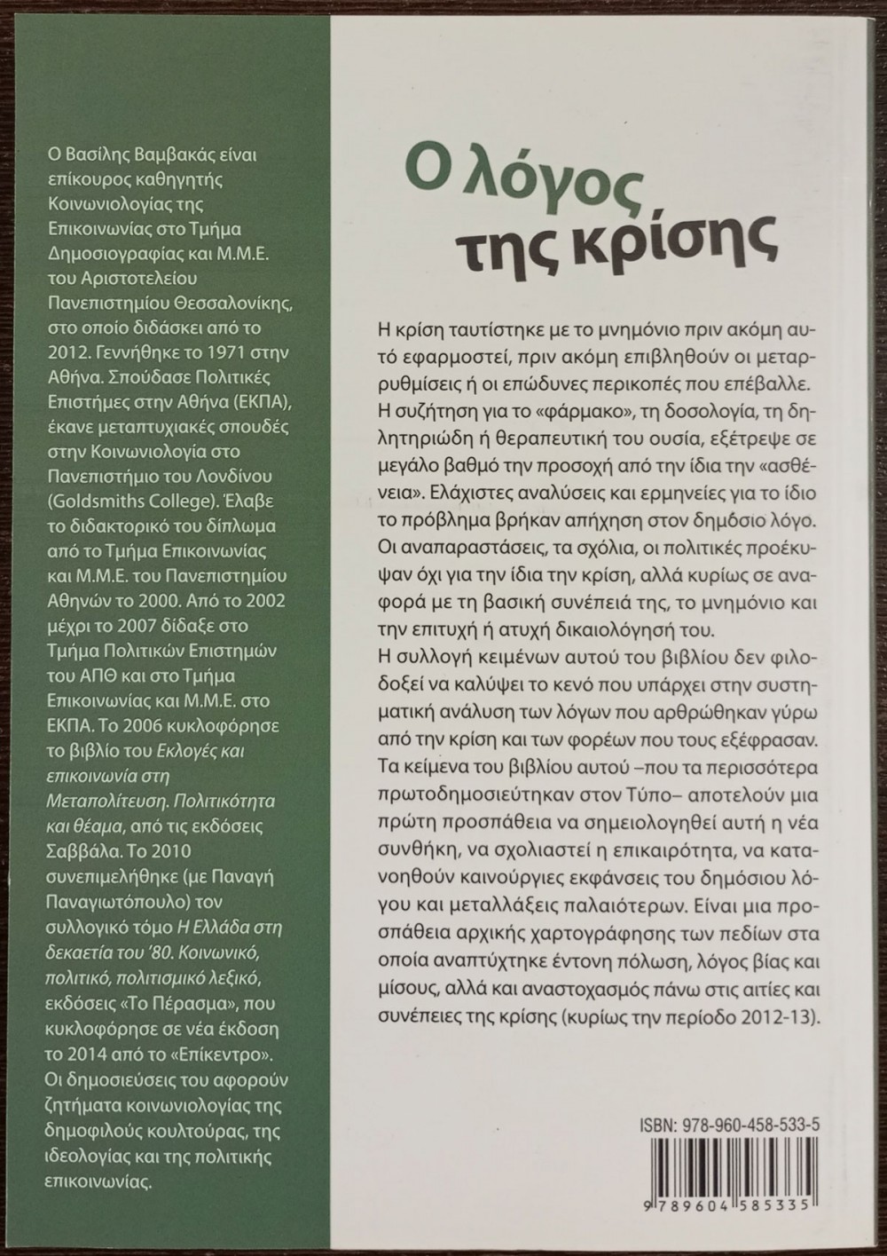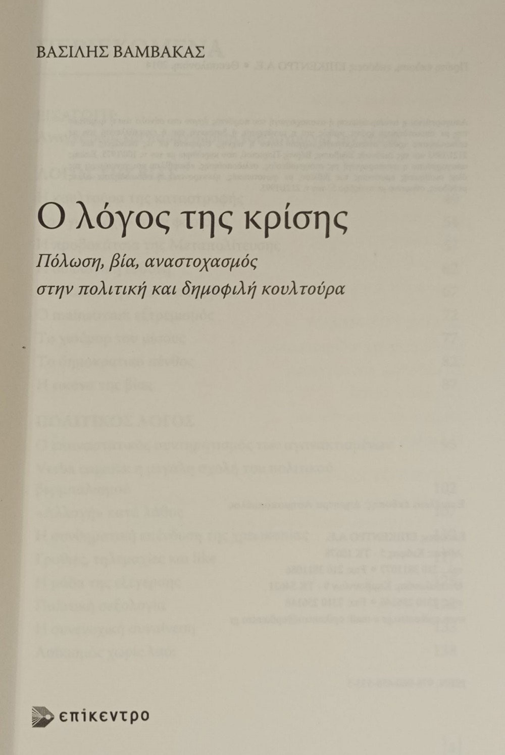 ΤΟ ΕΚΚΡΕΜΕΣ - ΠΟΛΙΤΙΚΗ, ΚΟΥΛΤΟΥΡΑ ΚΑΙ ΚΟΙΝΩΝΙΑ ΣΤΗΝ ΕΛΛΑΔΑ ΤΩΝ ΣΥΝΕΧΩΝ ΚΡΙΣΕΩΝ