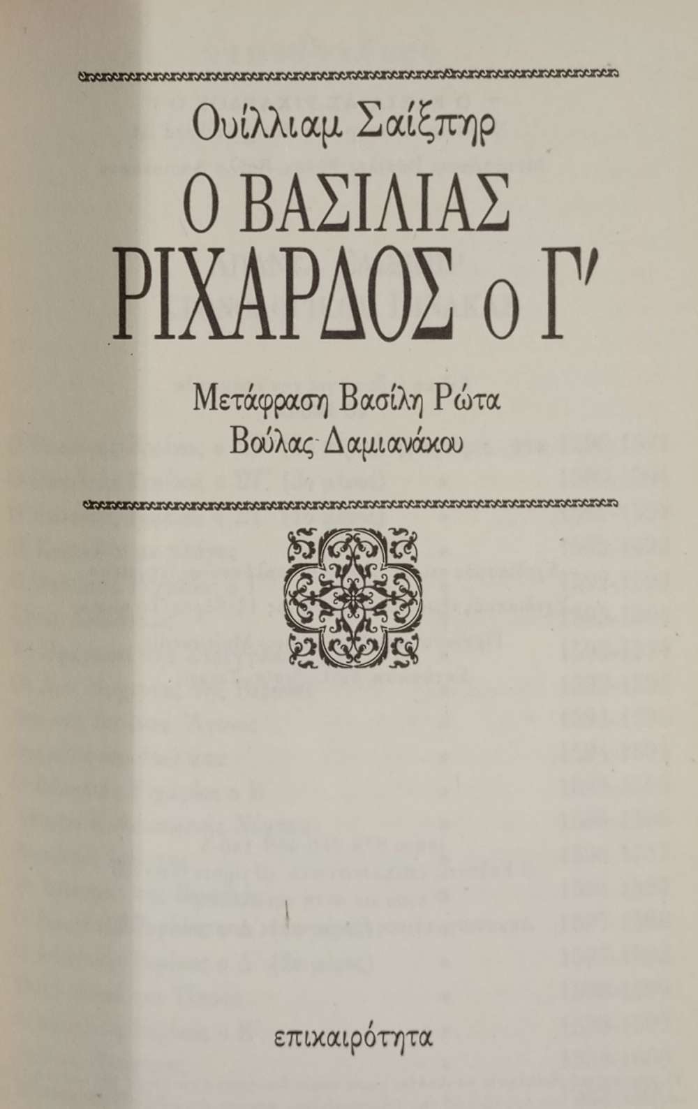 ΟΥΙΛΛΙΑΜ ΣΑΙΞΠΗΡ - ΑΠΟΔΟΣΗ ΕΠΤΑ ΘΕΑΤΡΙΚΩΝ ΕΡΓΩΝ ΣΕ ΠΕΖΑ ΑΠΟ ΤΟΝ ΤΑΣΟ ΛΕΙΒΑΔΙΤΗ