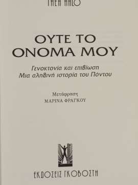ΟΥΤΕ ΤΟ ΟΝΟΜΑ ΜΟΥ - ΓΕΝΟΚΤΟΝΙΑ ΚΑΙ ΕΠΙΒΙΩΣΗ - ΜΙΑ ΑΛΗΘΙΝΗ ΙΣΤΟΡΙΑ ΤΟΥ ΠΟΝΤΟΥ