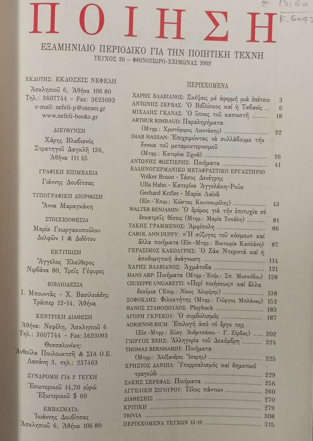 ΠΟΙΗΣΗ - ΤΕΥΧΟΣ 20 - ΦΘΙΝΟΠΩΡΟ ΧΕΙΜΩΝΑΣ 2002